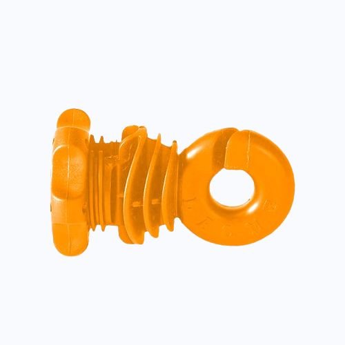 Evita que la electricidad se escape a tierra. Este aislador se enrosca fácilmente en varillas de fierro (de construcción) para sujetar el alambre o cordón del cerco.
